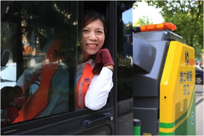 在人們印象中,環衛工都是一些大爺大媽模樣的人拿著掃帚簸箕在工作。白襯衫、橙色馬夾,開著外形美觀潔凈的機掃車工作的女子機掃隊,成為了浦口區一道流動的風景線。