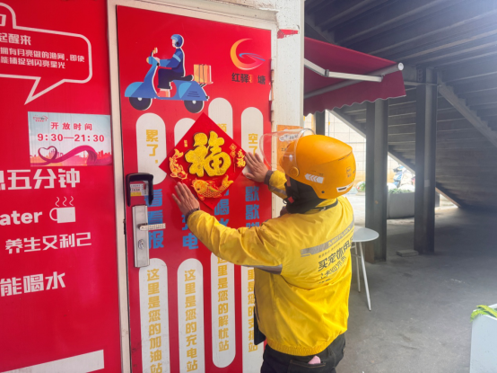 除集體包餃子外,街道還為騎手們準備了暖心福袋,送上節日的問候與關懷。隨后,大家一同動手布置驛站,張貼春聯、打掃整理,讓驛站在新春來臨之際煥然一新、年味十足。