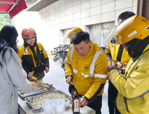 活動以包餃子為主線,在職工志愿者和社區網格員的協助下,騎手們圍在一起,邊聊邊包,氣氛溫馨熱烈。許多騎手從手法生疏到漸漸熟練,一個個元寶狀、月牙形的餃子逐漸擺滿桌面,包裹著濃濃的鄉情與歡笑。“在老家,小年一定要吃餃子,沒想到今年在南京也能親手包上。”一位騎手邊包邊笑著說道,言語中洋溢著感動與喜悅。