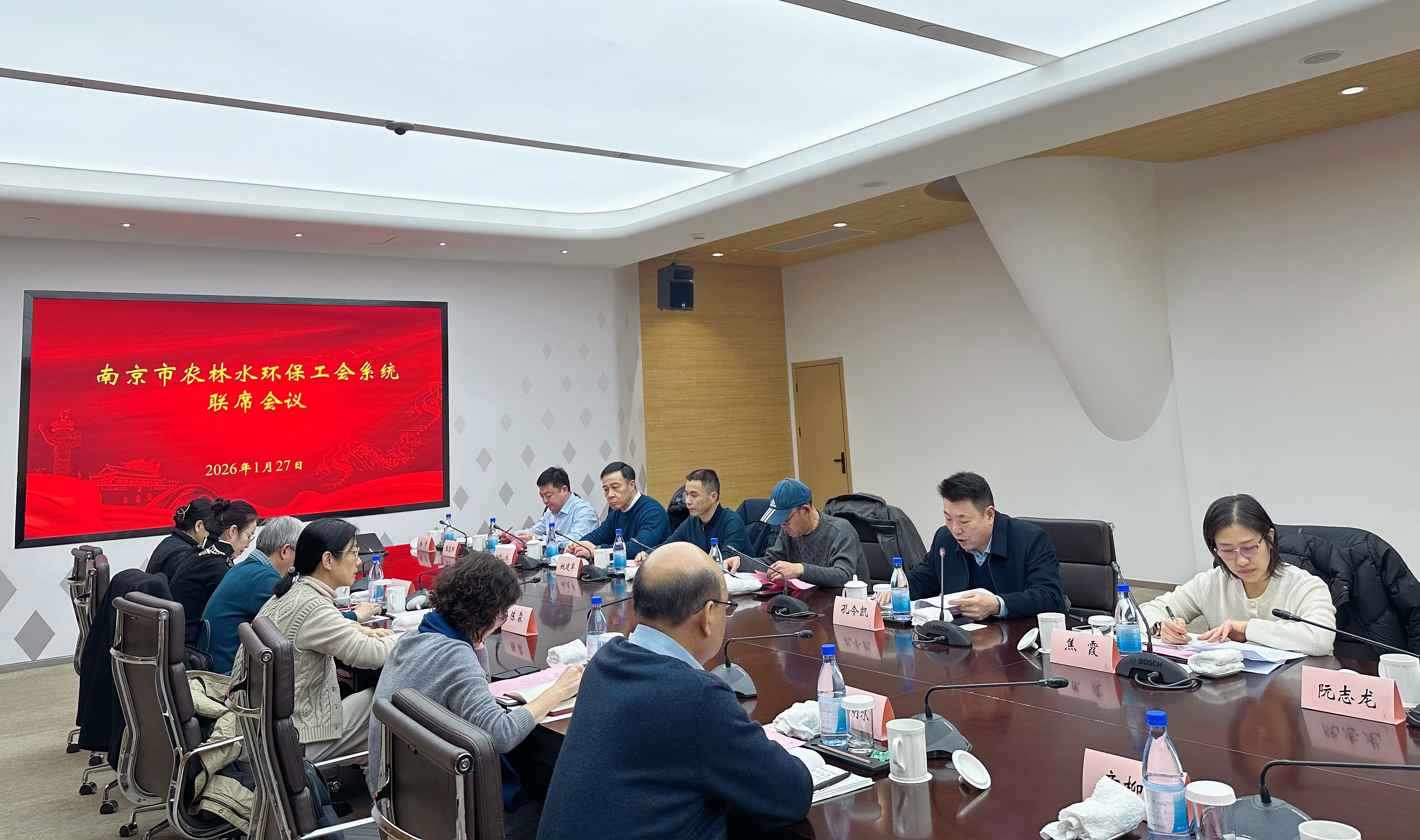 南京市農林水環保工會系統聯席會議于2026年1月27日順利召開。市總工會、市生態環境局、水務局、農業農村局分管領導,市農林水環保工會聯合會第二屆委員會常務委員,河西集團、水務集團、新農集團領導等共同參會。